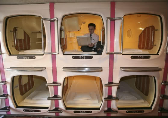 Japonya'daki bu otel, konaklamayı ucuza getirmek isteyen japon iş adamları için yapılmış. Oda, kapsül şeklinde ve tek kişilik. Bir yatak ancak sığıyor.