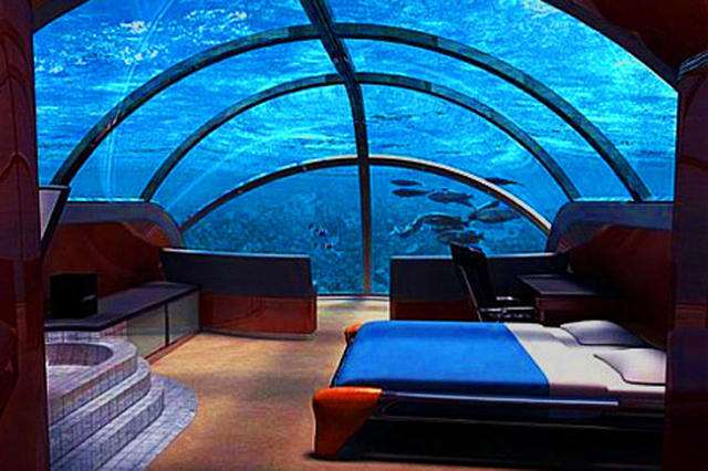 Fiji adasındaki bu otel suyun 330 metre altında. Pencerenizin önünden denizin altını seyredebilir, gelip geçen muhteşem güzellikteki balıkları inceleyebilirsiniz.